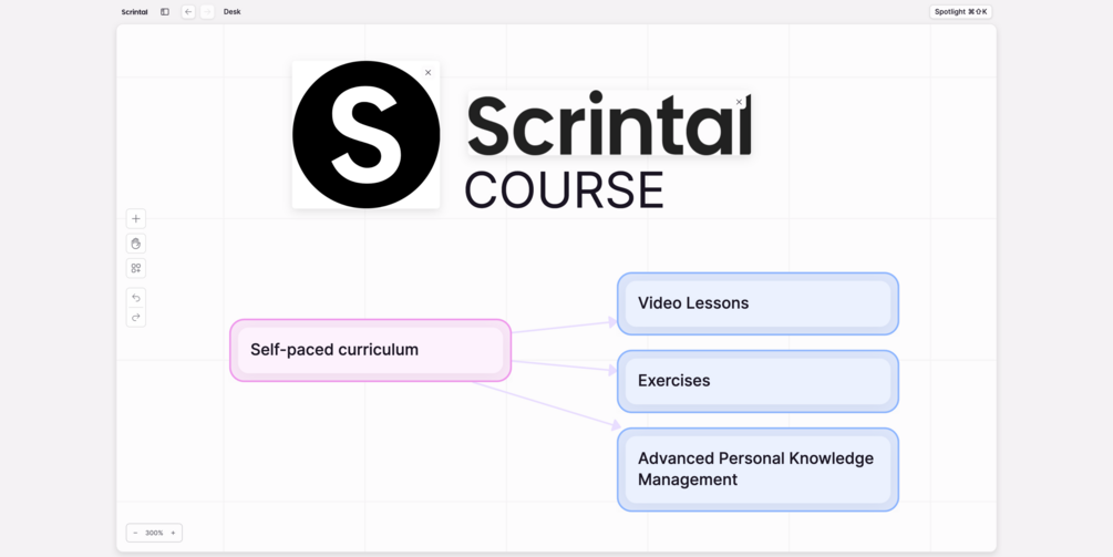 In The Scrintal Course, you will learn everything you need to know to use Scrintal and take advantage of it for your own Personal Knowledge Management. It includes: